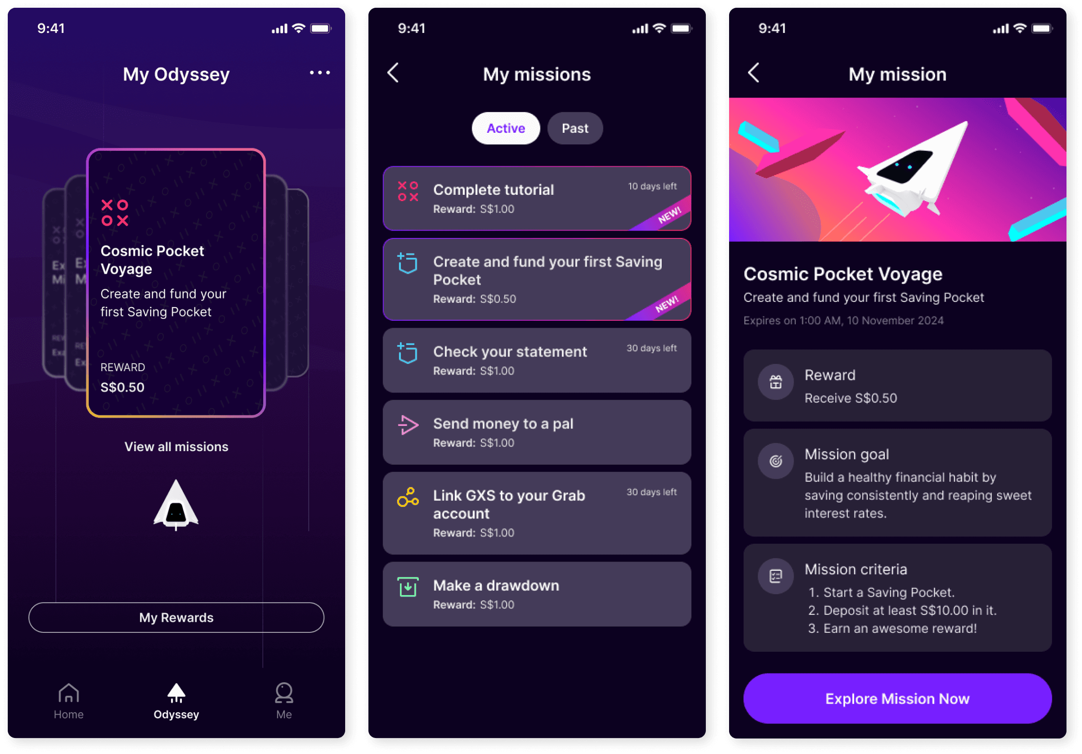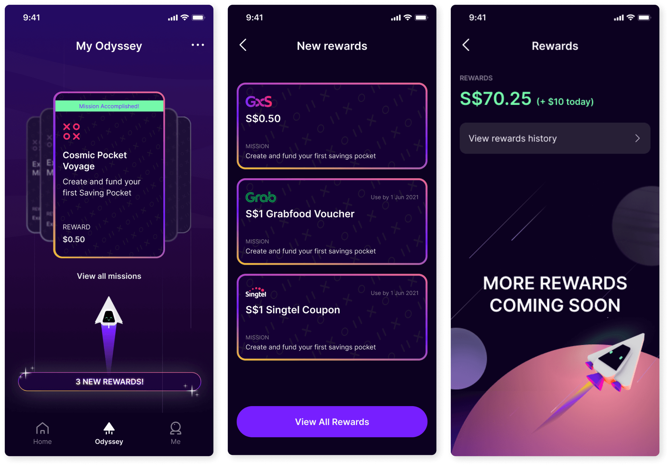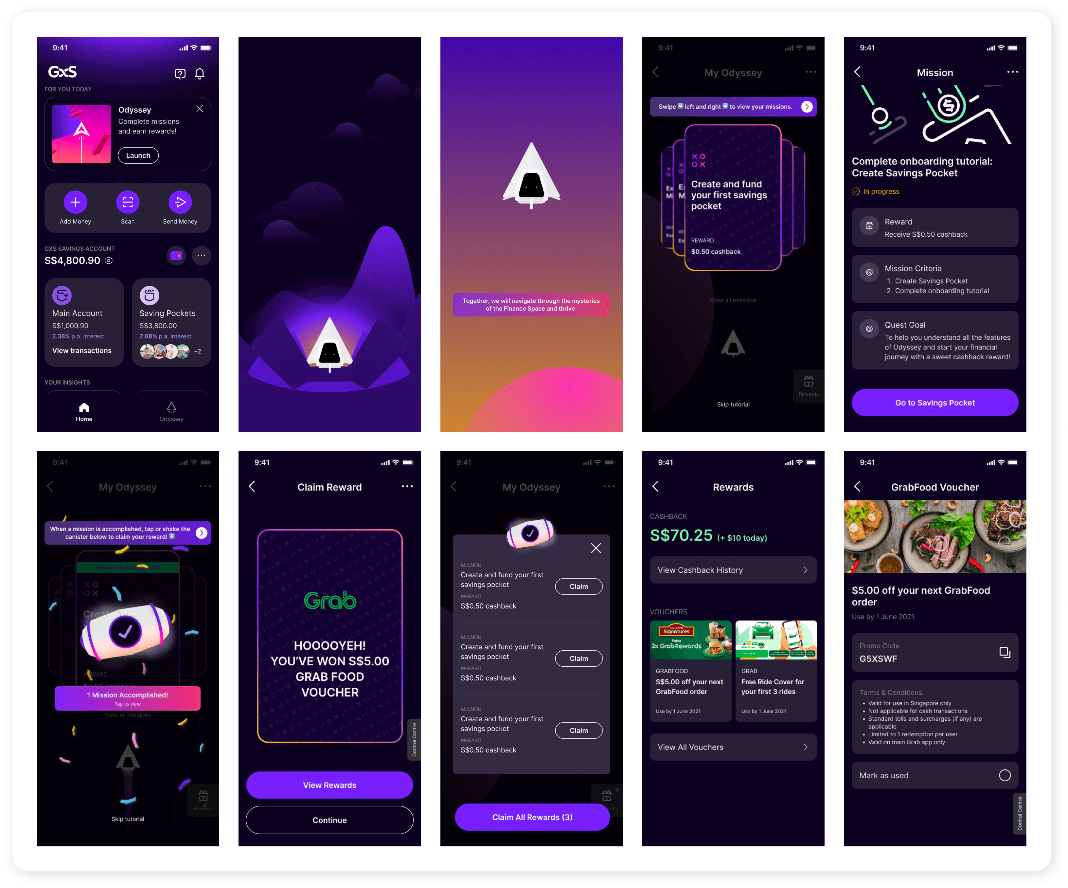 Shoutout to the awesome and capable Loyalty squad at GXS bank - for being the best team I've worked with. From the PM, Darren Ger, to our front-end, back-end and QA engineers for being so dedicated to delivering the best experience. Also, a huge thank you to Ryan and Sunny, designers who came before me and laid a solid foundation for Odyssey, allowing me to take it to the next step. 🙇🏻♀️