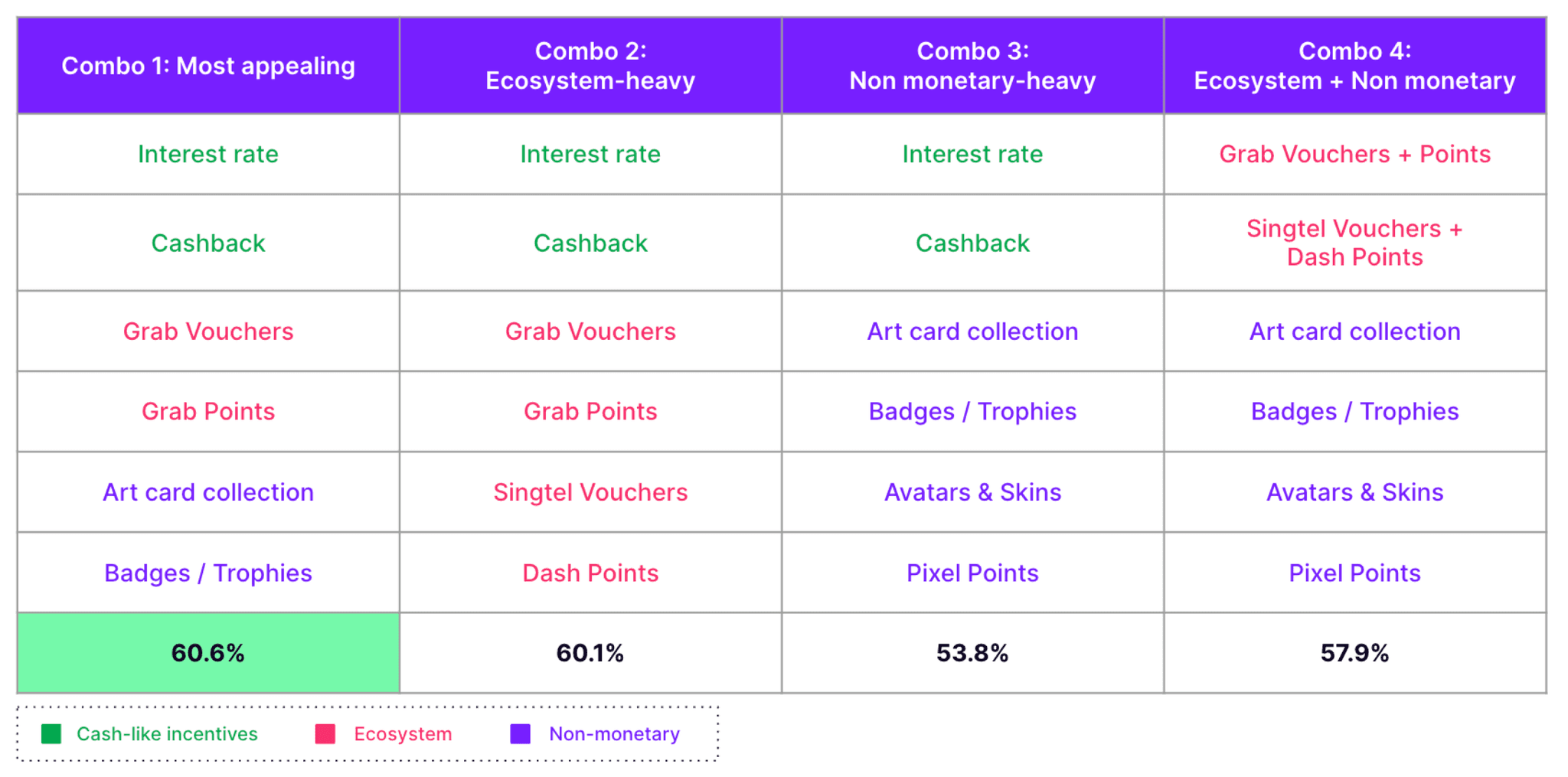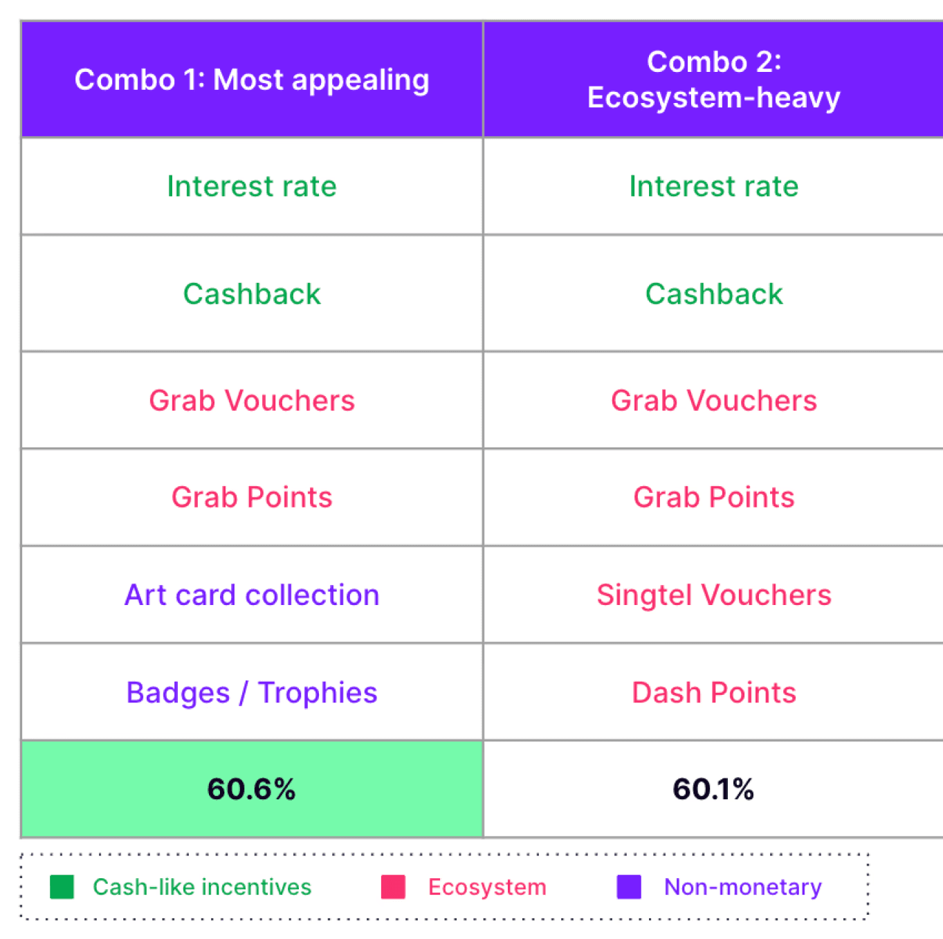 Cashback, interest rate and Grab vouchers are the top 3 preferred reward types.
