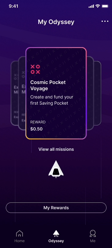 As we tactically launch missions to users based on their financial goals and rewards preferences, they will be able to slowly work towards their long-term goals.